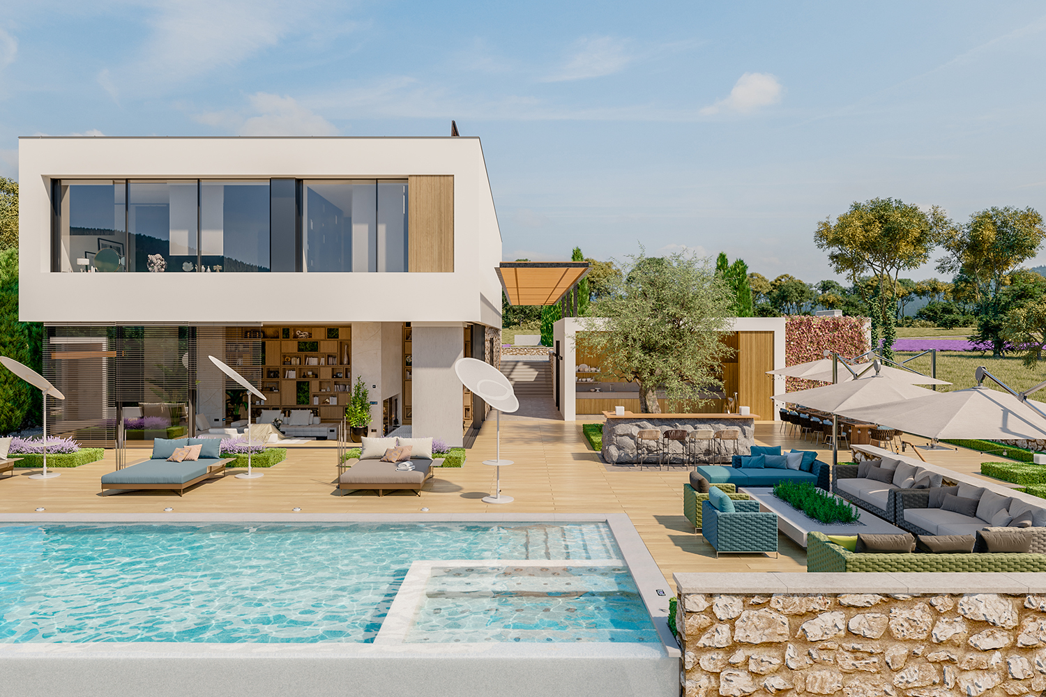 These outdoor areas can be used for a wide range of activities, from sunbathing and relaxing with friends and family to dining al fresco and enjoying the panoramic sea or mountain views.