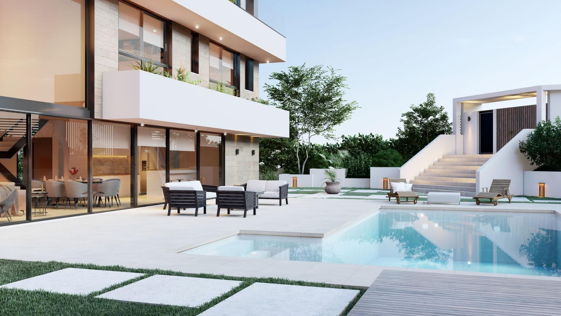 The houses have large private and closed garden areas for your relaxation with a possibility of being equipped with a swimming pool, pergola and other services, to enhance outdoor life in a friendly and quiet environment, away from the hustle and bustle of the city, but without giving up any city comforts.