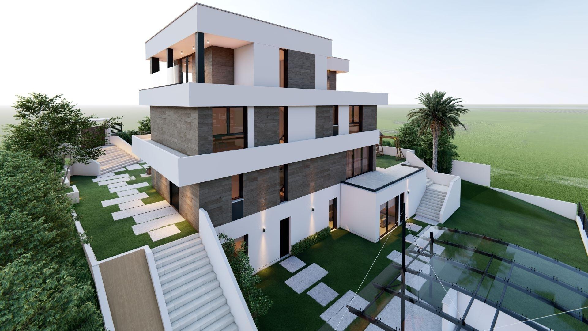This project has been conceived with great attention to detail in terms of construction materials, finishes and amenities such as a lift that goes up and down the four levels of this large villa.