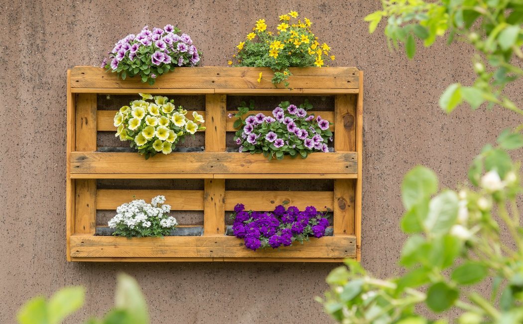 Otra de las ideas con palets para el jardín está relacionada con la incorporación de vegetación en él. Así, se pueden encontrar jardineras, maceteros o, incluso, jardines verticales.